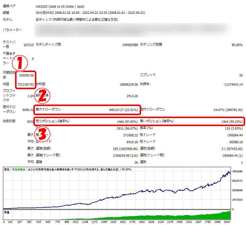 上記は2008/01~2022/04/22の14年間FACTにてバックテストをした結果になります。