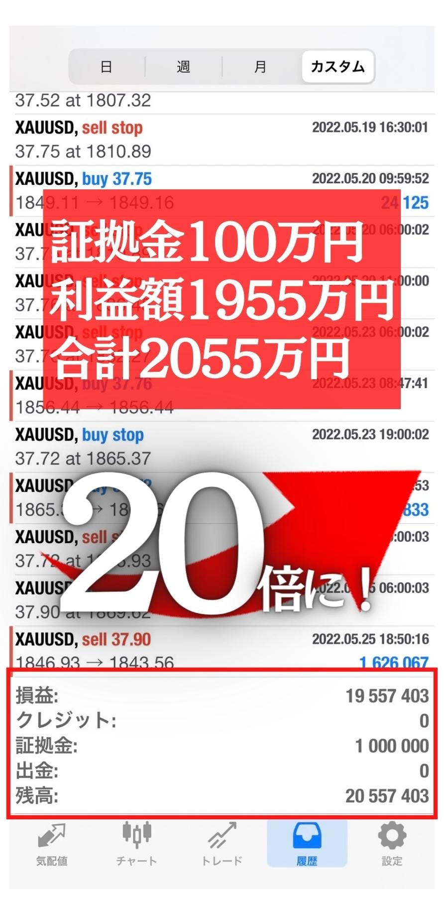 期間がたったの「3か月」で20倍に!