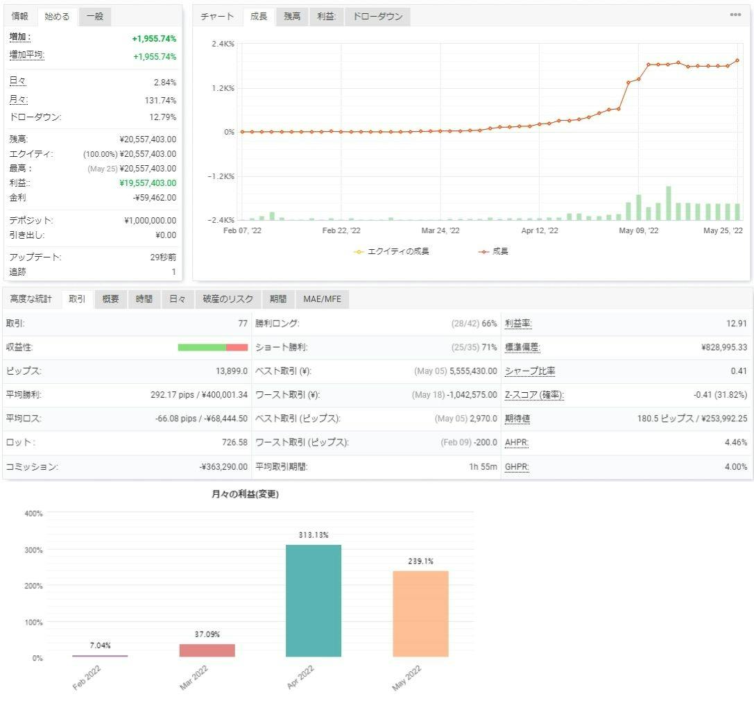 フォワードテストにて100万円に対して利益が1955万円でております。